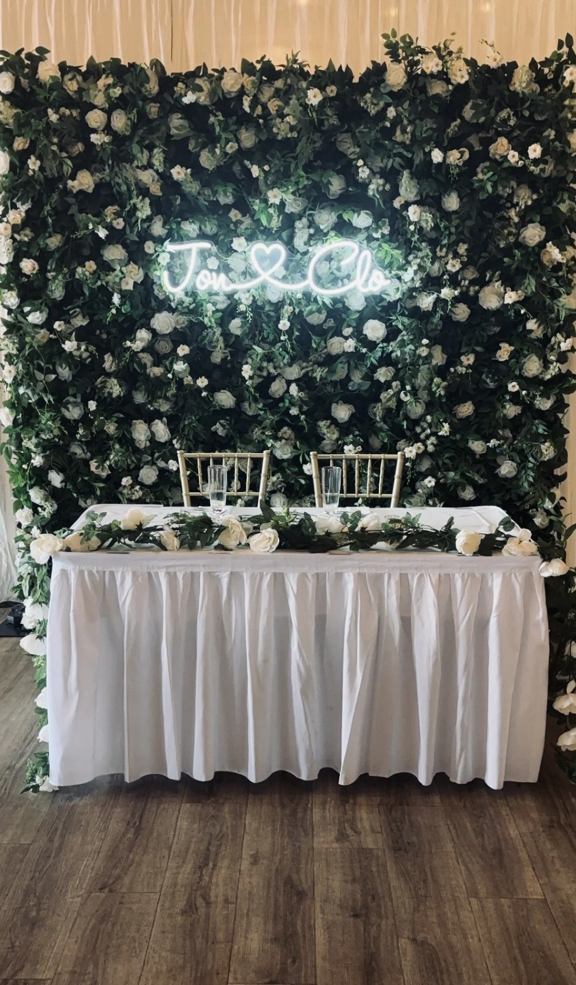 Check out our 5D floral walls! Complete set up and take down provided. Add balloons or a neon sign to customize!